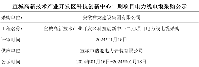 宣城高新技術(shù)產(chǎn)業(yè)開發(fā)區(qū)科技創(chuàng)新中心二期項目電線電纜采購公示
